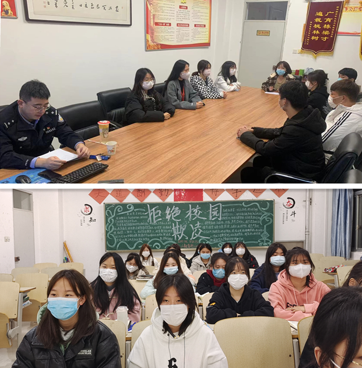 为增强学生防范欺凌意识,确切有效的预防校园欺凌事件发生,维护和确保学校的稳定和发展,构建和谐良好的学习环境,11月14日,师范学院邀请渭南市高新区白杨派出所民警屈警官在线上为师范学院学生开展“拒绝校园欺凌,防范校园暴力”知识讲座,师范学院各班同时开展主题班会。